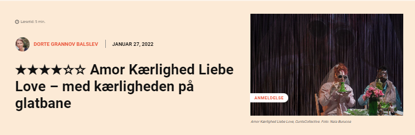 AMOR KÆRLIGHED LIEBE LOVE is a deconstructed rom-com, a “techno musical”, that dissects the Western notion of “true love” from within; blending guilty pleasures with critical thought, cringe with catharsis and alienation with raw emotion. Through the mantra nothing is universal, the performance invites the audience into a world of augmented reality, intimidating intimacy, deconstructed clichés, divorced body parts, heartfelt electronic music and love tirades.